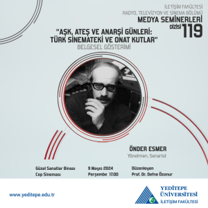 The 119thseminar of the series of seminars organized by Yeditepe University Faculty of Communication, Department of Radio, Television and Cinema within the scope of RTC 482 Media Seminars course since 2015 is being held this week. Within the scope of the seminar organized by Prof. Dr. Defne Özonur, "Days of Love, Fire and Anarchy: Turkish Cinematheque and Onat Kutlar" documentary will be screened.